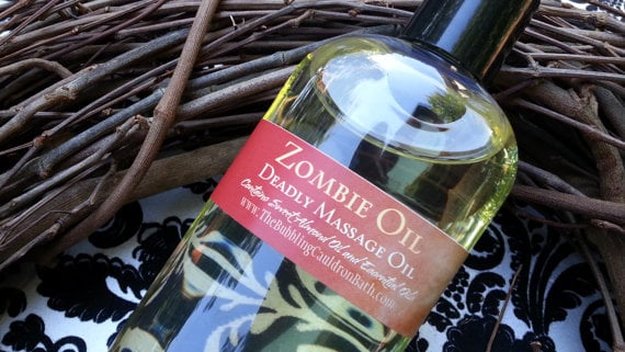 This massage oil is great for you and your zombie lover. Made with sweet almond oil and scented with your favorite scent blend - the descriptions are below. A lustful massage oil that you will truly enjoy down to the last bite, er, drop! 4 Ounce Bottle